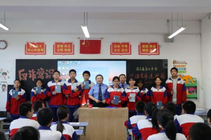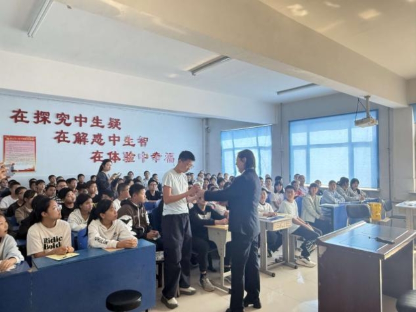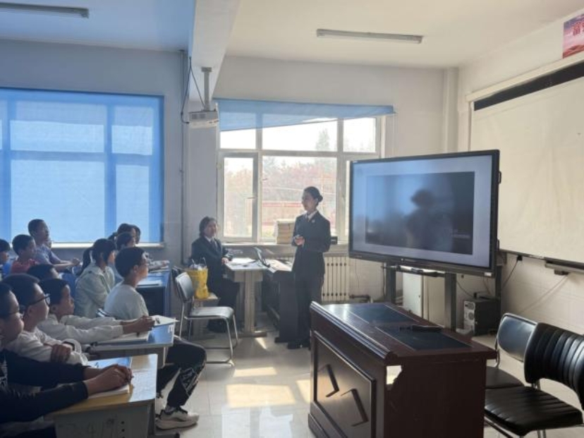 为帮助未成年人树立正确的法律观念,巴彦农场中心校(初中部)法治副校长孟楠以 “做知法明理好青年” 为主题,向同学们系统介绍了 “法是什么”、“为什么要学习法律” 、不良行为与违法犯罪行为的定义等,课堂中穿插互动提问,最后还引用教员“世界是你们的,也是我们的,但是归根结底是你们的”话语,进一步激发学生们尊法守法、奋发向上的意识。