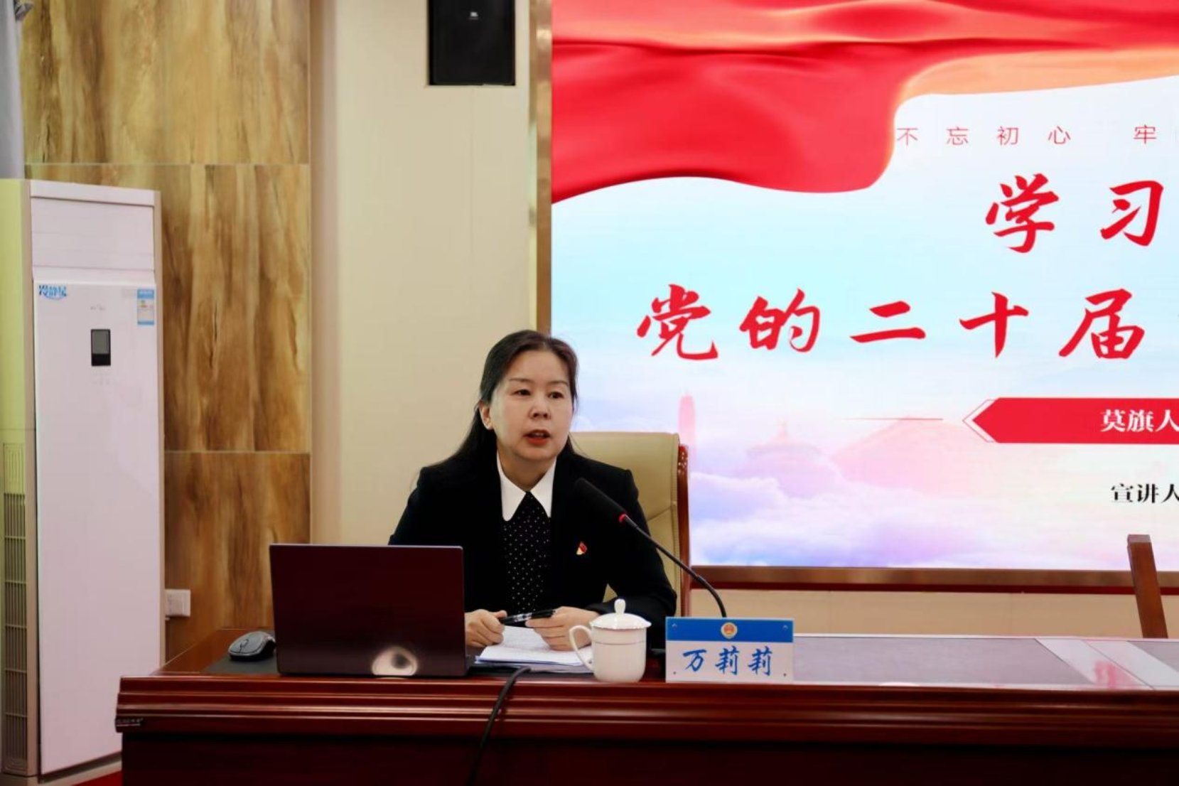 为推动党的二十届四中全会精神在检察工作中落地生根、见行见效,12月25日,莫旗检察院召开专题宣讲会,党组书记、检察长万莉莉为全体检察人员作党的二十届四中全会精神宣讲,引导大家切实把思想和行动统一到党中央决策部署上来。