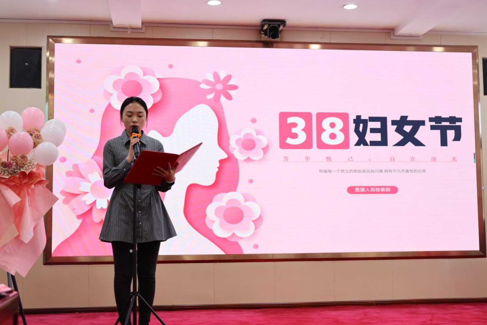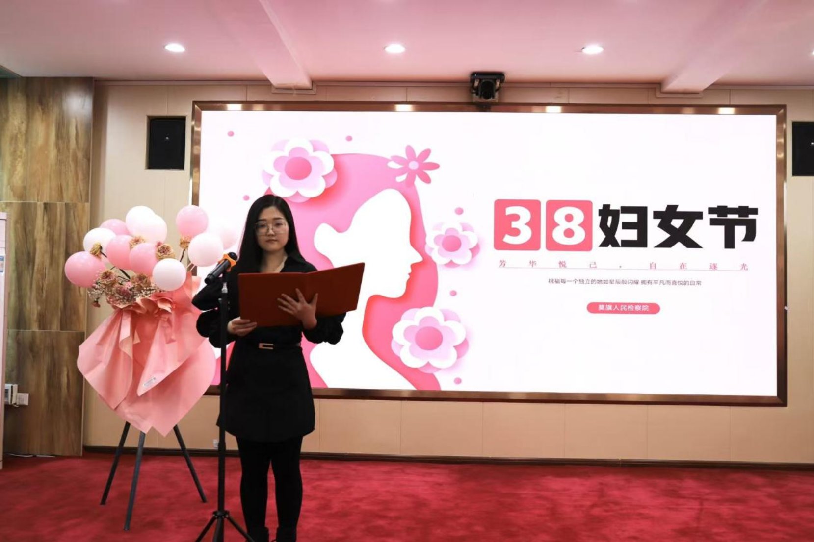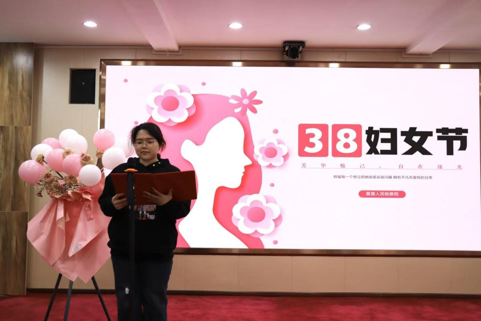 致辞结束后,主题朗诵活动正式开始。女检察人员精神饱满、仪态端庄,紧扣时代主题与检察使命,依次登台朗诵。作品或讴歌伟大时代,或致敬检察初心,或抒发巾帼情怀,声情并茂、铿锵有力,情感真挚、感染力强,生动诠释了对党忠诚、服务人民、维护公平正义的坚定信念,充分展现了检察巾帼柔肩担道义、匠心守初心的时代风采,赢得了现场阵阵掌声。